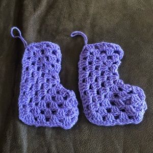 This is a set of two purple Crochet Christmas Stockings! Handmade by me! Willing to do other colors, including multiple colors and I can make them larger or smaller! If you want a different color or for them to big bigger just let me know and I’ll make them and then post them!