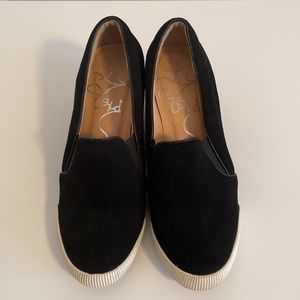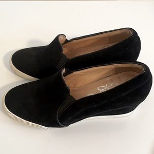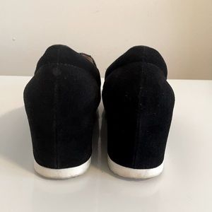 Black suede hidden wedge platform sneakers
