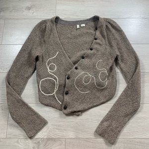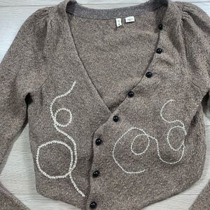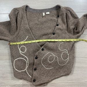 Anthropologie Moth Wool Brown Cropped Embroidered Cardigan Sweater