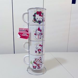 NEW Sanrio Hello Kitty Christmas stackable mug set. Comes with 4 mugs (10 oz) and 1 stand rack.