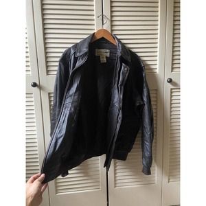 Vintage LL Bean Goatskin Black Leather A-2 Flight Full Zip Jacket Men’s Size L