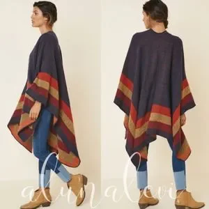 037 Cozy Color Block Shawl Wrap Poncho