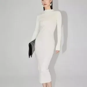 🔑sweater dress, knit dress, bodycon, long sleeve, fall, mock neck, sheath, business casual, everyday, work, basic, solid, trendy, casual, straight, casual, day to night, event, party, date, ivory, cream, wedding guest, shower, special occasion