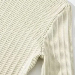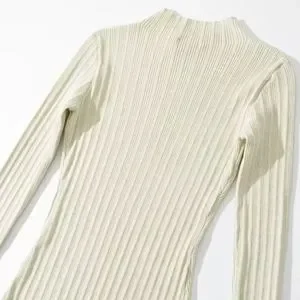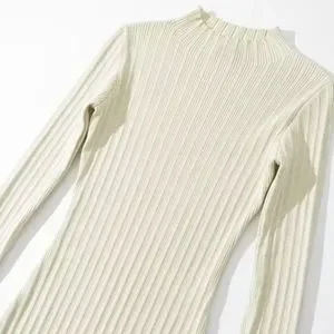 Cream Ribbed Knit High Neck Midi Dress