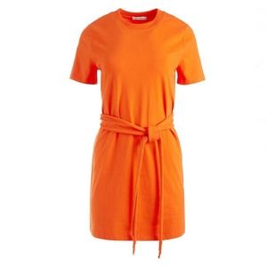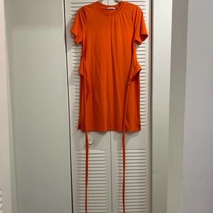 Alice + Olivia Evie Wrap Short Sleeve TShirt Dress, Sienna Bright Orange, Size Medium. MSRP $195