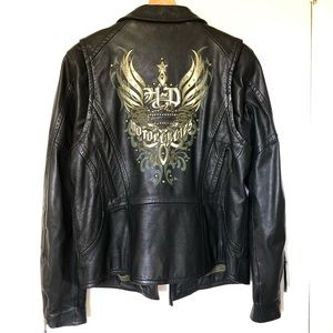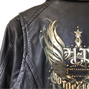 Women’s Harley Davison Genuine Leather Motorcycle Jacket Size Large Embroidered Studs Zipped Color Black