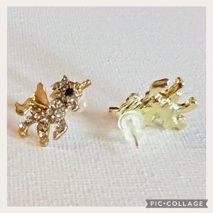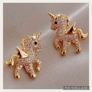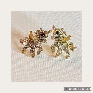 NWT Exquisite Gold Tone Rhinestone Unicorn Post Earrings HP