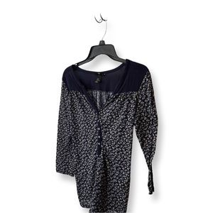 Beautiful long sleeve top. Super cute floral print in navy, lighter blue and cream colors. 5 buttons for decorative effect on front of shirt. Really gorgeous top in excellent pre-owned condition. Consider bundling with two other items for an automatic 15% discount.