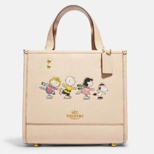 Coach X Peanuts Dempsey Tote 22 With Snoopy And Friends Ice Skating, Very Cute!!