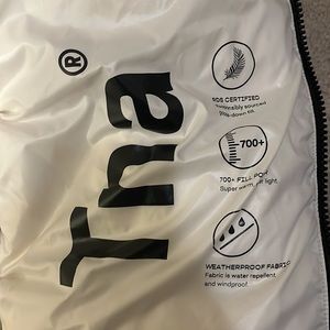 @alexisbeechner Thank you! Sorry but could you post a close up picture of the tags / writing on the inner left side where it says the fill and whether it’s water-resistant / water-proof and wind-resistant / wind proof , etc.