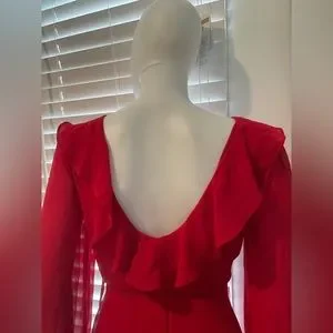 SMALL FOREVER 21 RED WRAP DRESS + RUFFLES