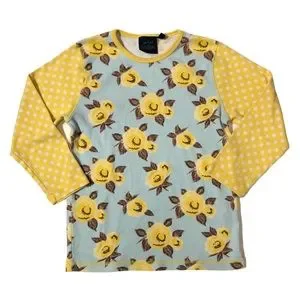 Cute mixed print top with three-quarter sleeves by Mini Boden. Mixed floral print with polka dot sleeves. Size 11-12. 100% cotton. Very good pre-loved condition for minor general wash wear. From smoke-free and pet-free home. Bundle and save!