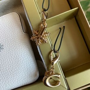 Authentic COACH Pebbled leather ๐๐งธ top zip wristlet with 2 charms in Gift box