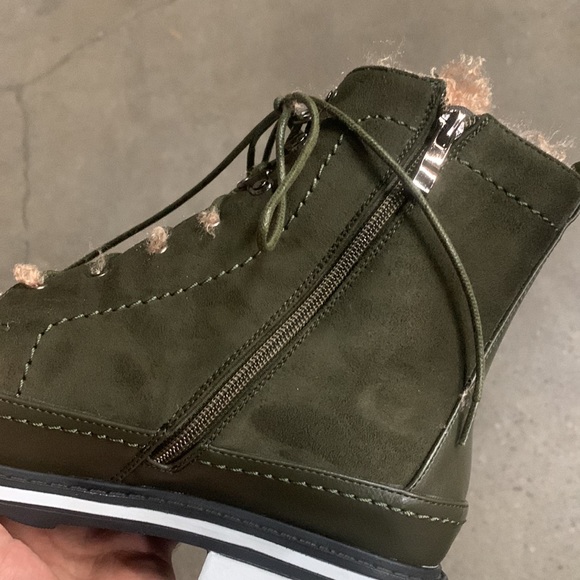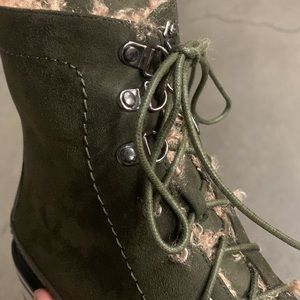 Women’s Lace Up Zip non Slip Sole Ankle Boot in Green Faux Suede