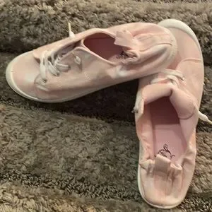 XL Pink Tie Canvas Sneaker no tie shoe strings slip on w/stretch. New never been worn.