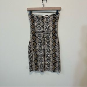 New with tags womens size extra small brown snakeskin print Devon mini strapless bodycon dress. Super soft and stretchy fabric. I AM GIA