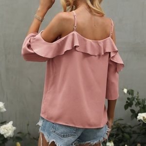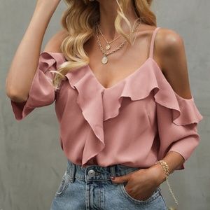Boho Ruffle Detail Cold Shoulder Blouse