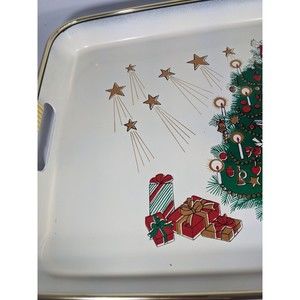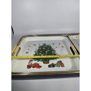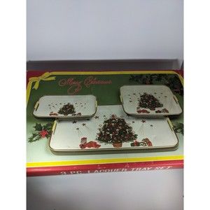 VTG 3 Pc Lacquered Merry Christmas Nesting Trays Hand Decorated w/ box Japan Normal use and wear expected with age Scratches on bottom Slight Discoloration See all photos