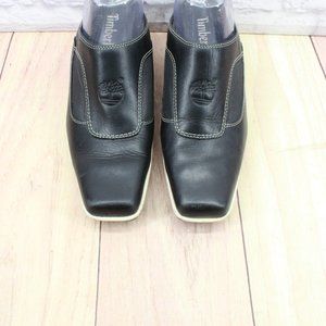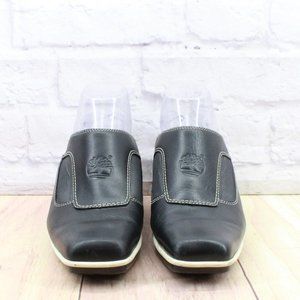 Timberland Black Leather Slip On Wedge Mules Clogs Shoes Size 9 Medium