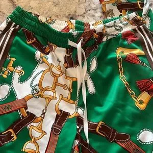 Equestrian print PAROSH pants with front pockets, drawstring waist, zippers at the bottom of each leg, size M. Good for someone tall (around 5’10”) great condition