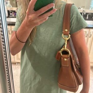 New tan Coach handbag closet staple classic. This is in perfect condition and is made of super soft leather with brass accents like the front clasp. Was a present for my mom but she never used it and gave it back to me because she doesn’t wear brown so didn’t ever use it.