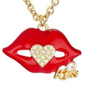 💥Beautiful Oversized LIPS pendant with gorgeous rhinestones / crystals and lovely gold heart