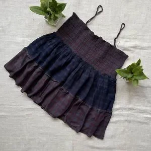 SOLD ❌ Brown and Blue Checked Smocked Top with noodle straps from LOFT