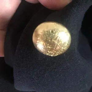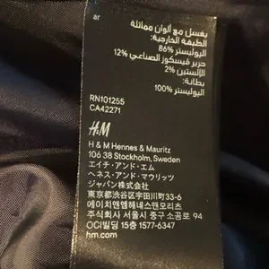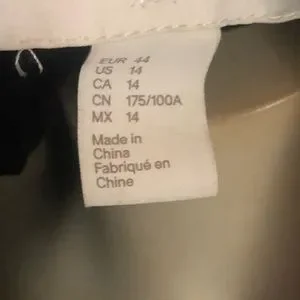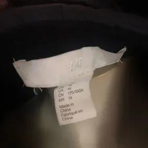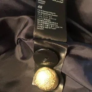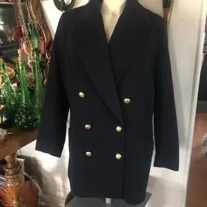 Stylish Navy Blue Peacoat with gold buttons ~ by H&am ~ Size 14. Fully lined in matching blue dating fabric. Measured flat/buttoned: pit-to-pit: 21-1/2”; waist: 20-1/2”; length from top of shoulder to bottom hem: 30”; sleeves: 22-1/2. In excellent condition.