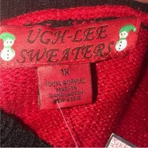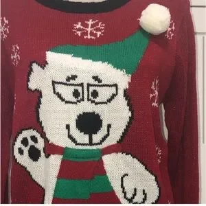 Cute X-mas Sweater bear with hat and scarf (runs small) pit to pit 19” length 29”