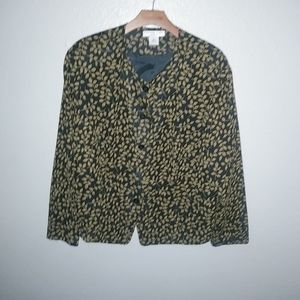 Josephine Chaus 20 Skirt Suit Black Gold Stemmed Leaf Pattern Set Plus