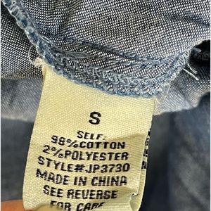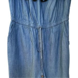 Jealous Tomato Blue Chambray Off shoulder ruffleTop Jumpsuit.