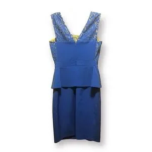 Gianni Bini Blue Peplum Cocktail Dress with Lace Detail