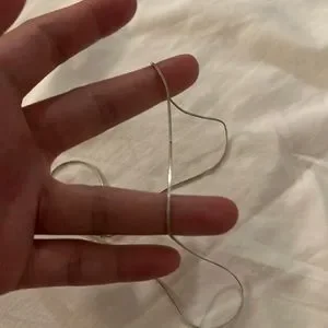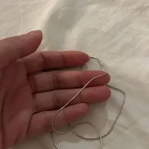 The chain shows some flaws - two minor bents or indentations but still wearable and intact. No cosmetic flaws to the pearl pendant