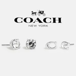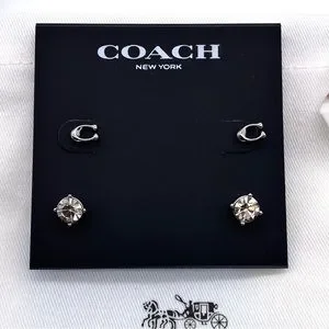 NWT Coach Signature C & Stone Stud Earrings Set
