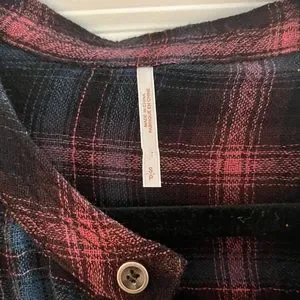 FREE PEOPLE popover top Black, pink, teal plaid Buttons half the way down