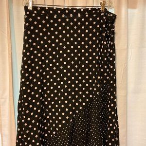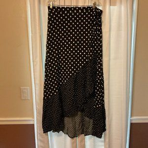 Torrid Black Polka Dot Challis Wrap Skirt 3 White New NWT Hi-Lo Hem Ruffle Trim
