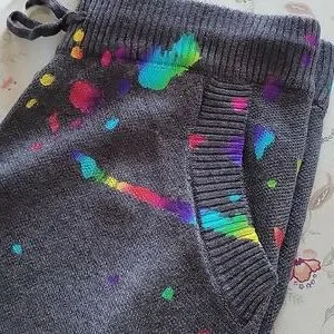 fall winter jog athletic athleisure joggers sweatpants knitted knit paint splat drawstring comfy casual weekend streetwear