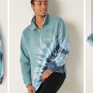 Brand new with tags PINK Victoria’s Secret oversized varsity half zip sweatershirt. Size large. Sold out!!! Super soft inside with two side pockets. Pink embroidered on the front and love pink pink embroidered on the back. Such a beautiful combination of colors with tie dye. Only selling as I bought last year and it has just been hanging in my closet since.