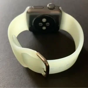 Love this beautiful soft touch changing colors IPhone wrist band. Yes it actually change color in the sun. It starts off a mint green color to blue in the sun Don’t miss out. Fits 38/40/41 mm iPhone watch. large wrist up to 8.7 wrist. Adjustable. Brand new. iPhone watch not included.