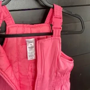 Like-new hot pink girls Carter’s snow bib. Adjustable straps, elastic waist and pocket on left side. Size 4t. In great condition! (No stains. Only used once or twice for one season.)