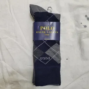 Polo Ralph Lauren 3-Pair Argyle Diamond Solid Super Soft Dress Socks Navy Blue