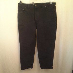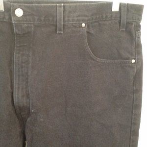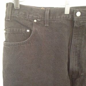 Levi's men's jeans. Size 46x30. Black. Levis 545. Loose. Heavyweight. Front zip. Denim. 100% cotton. Waist 44" (112 cm) is 2 inches smaller than tag size, inseam 29.5" (75 cm). Location 3351-fV Non-smoking cat-friendly home.