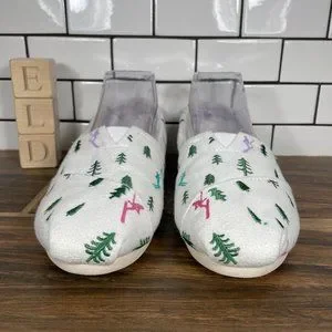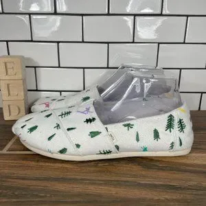 TOMS Seasonal Classic Alpargata Women's Size 9 Shoes White Ski Tree Print Flat