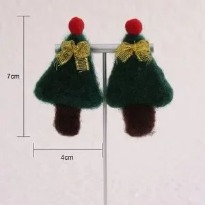 🎄 Awesome Ribbon Bow Felt Pompom Christmas Pine Tree Drop Earrings 🎄