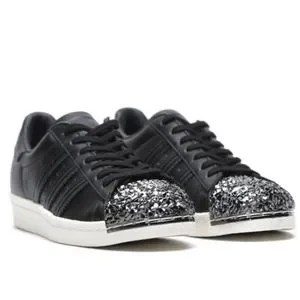 Adidas Superstar 80s 3D MT black & silver meteor crystal cap toe sneakers. They're hard toe and metal!