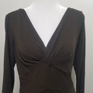 Pre-owned Ann Taylor LOFT long sleeve V-neck top. Size Small. Color: Dark Brown