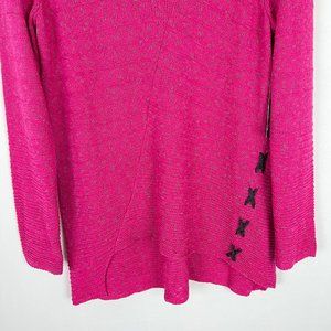 NWT NIC+ZOE Crossstitch Sweater Pink Lace Up Size Medium M NEW