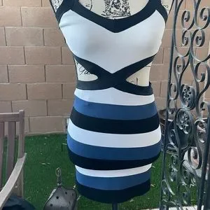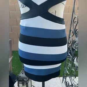 BCBGMaxAzria Elle Cutout Bandage Stripe Body-con Color block Mini Dress Small