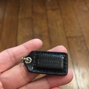 1.5 " Small COACH BLACK LEATHER KEY FOB CHARM KEYCHAIN HANG TAG WRISTLET