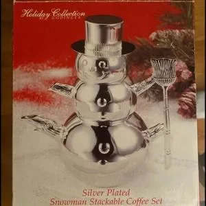 Vintage Brand New, Never Used , Beautiful, Godinger Holiday Collection 4 Piece Silver Plated Stackable Snowman Coffee Set. Lin p Condition is New in box with original packaging.